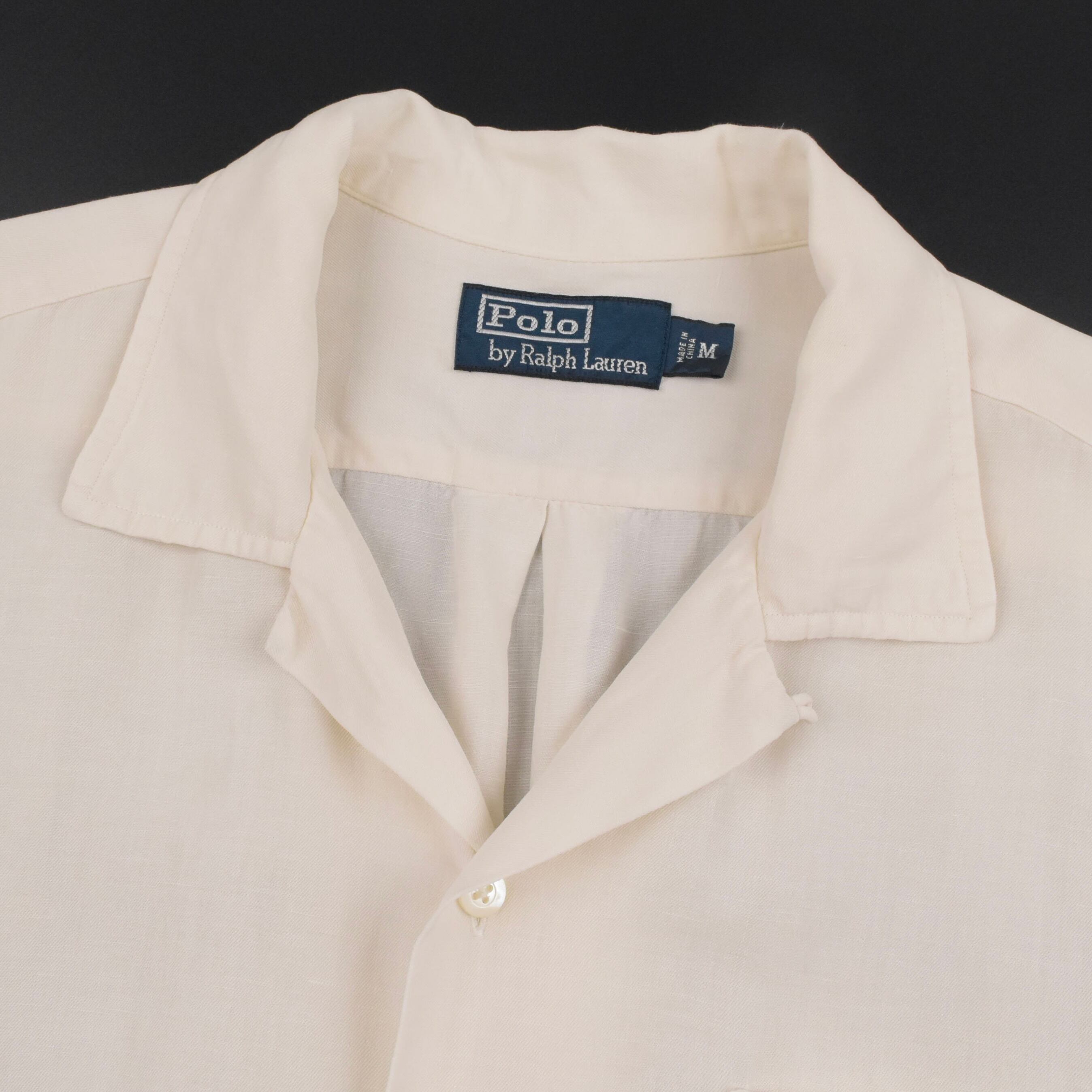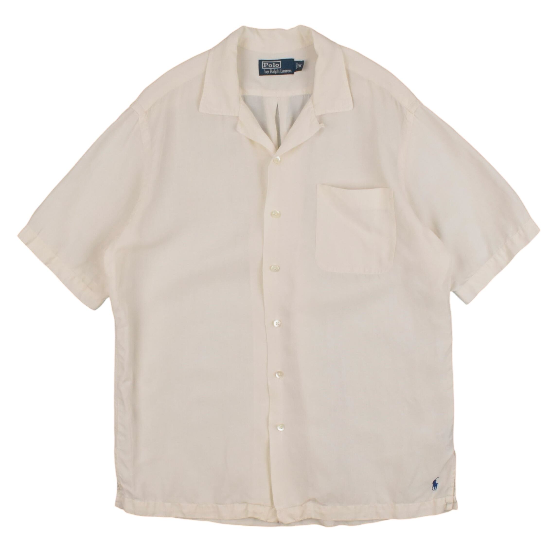 【品名】90s Polo Ralph Lauren Short Sleeve Open Color Shirt LINEN SILK CREAM WHITE NAVY PONY