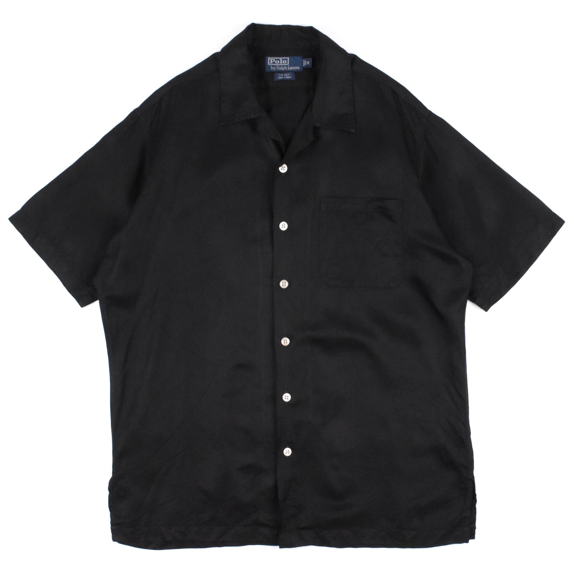 【品名】90s Polo Ralph Lauren Short Sleeve Open Color Shirt SILK LINEN BLACK