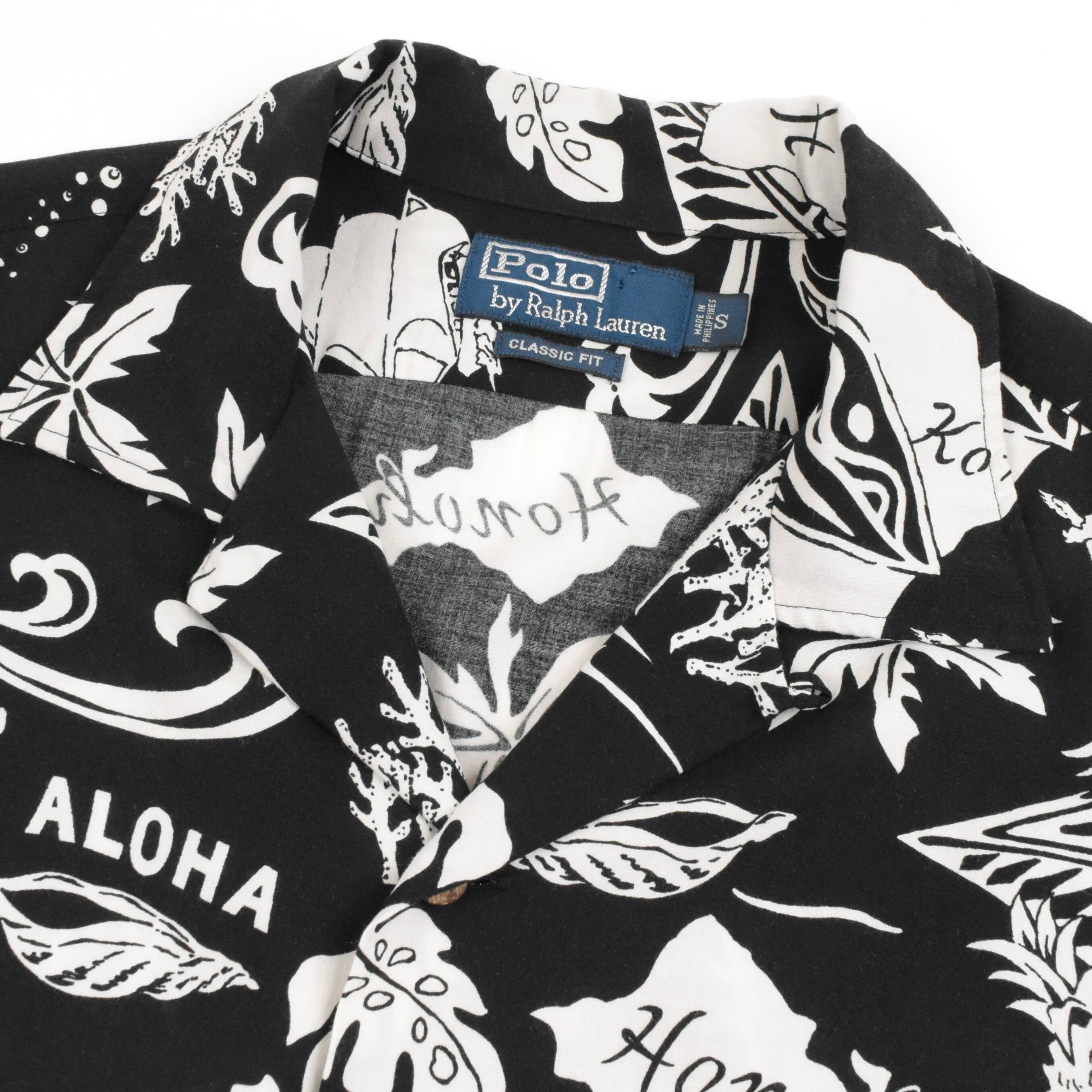 【品名】90s Polo Ralph Lauren Open Color Short Sleeve Shirt CLASSIC FIT BLACK WHITE ALOHA