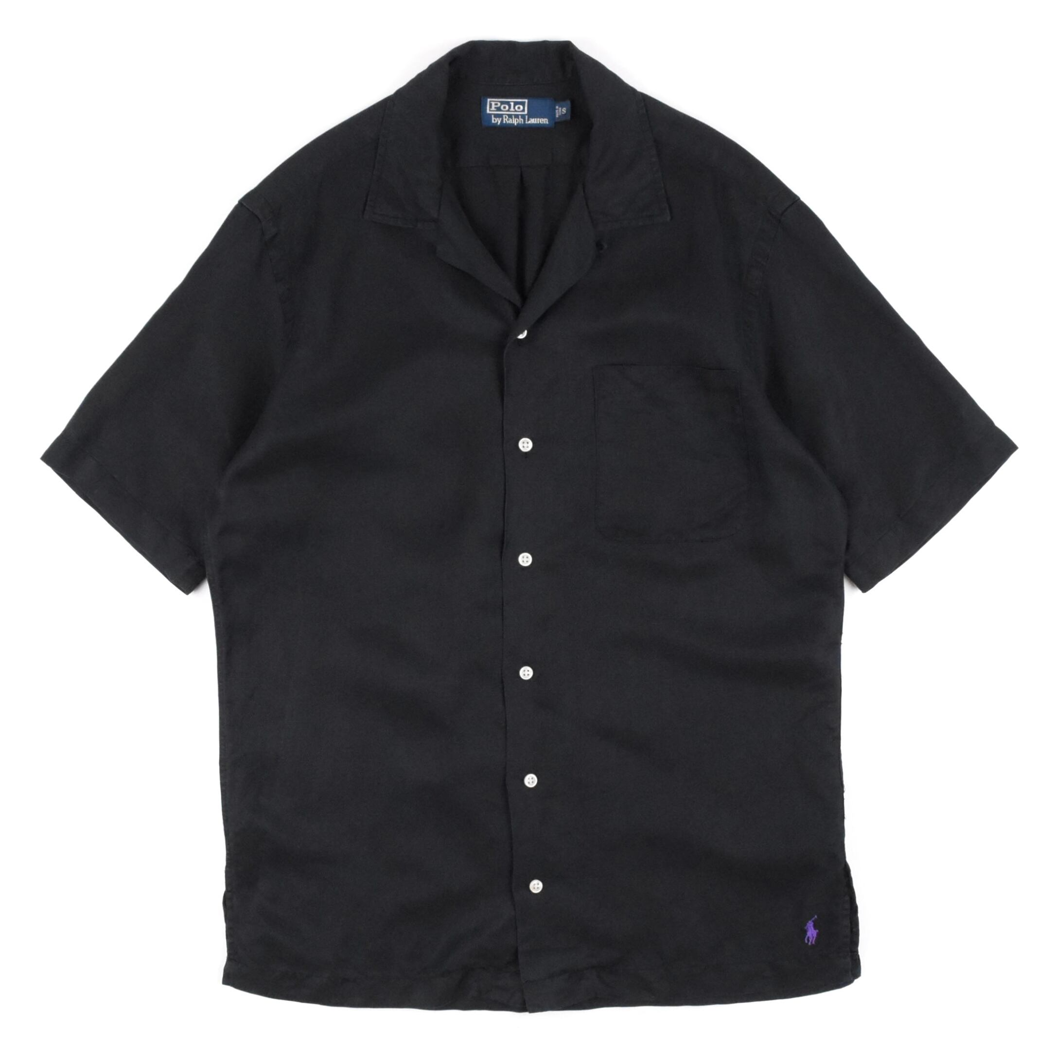 【品名】90s Polo Ralph Lauren Short Sleeve Open Color Shirt BLACK PURPLE PONY