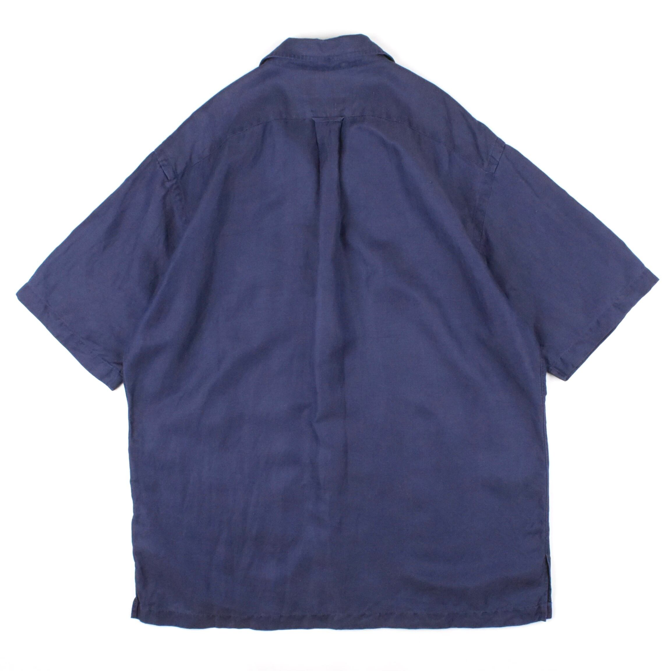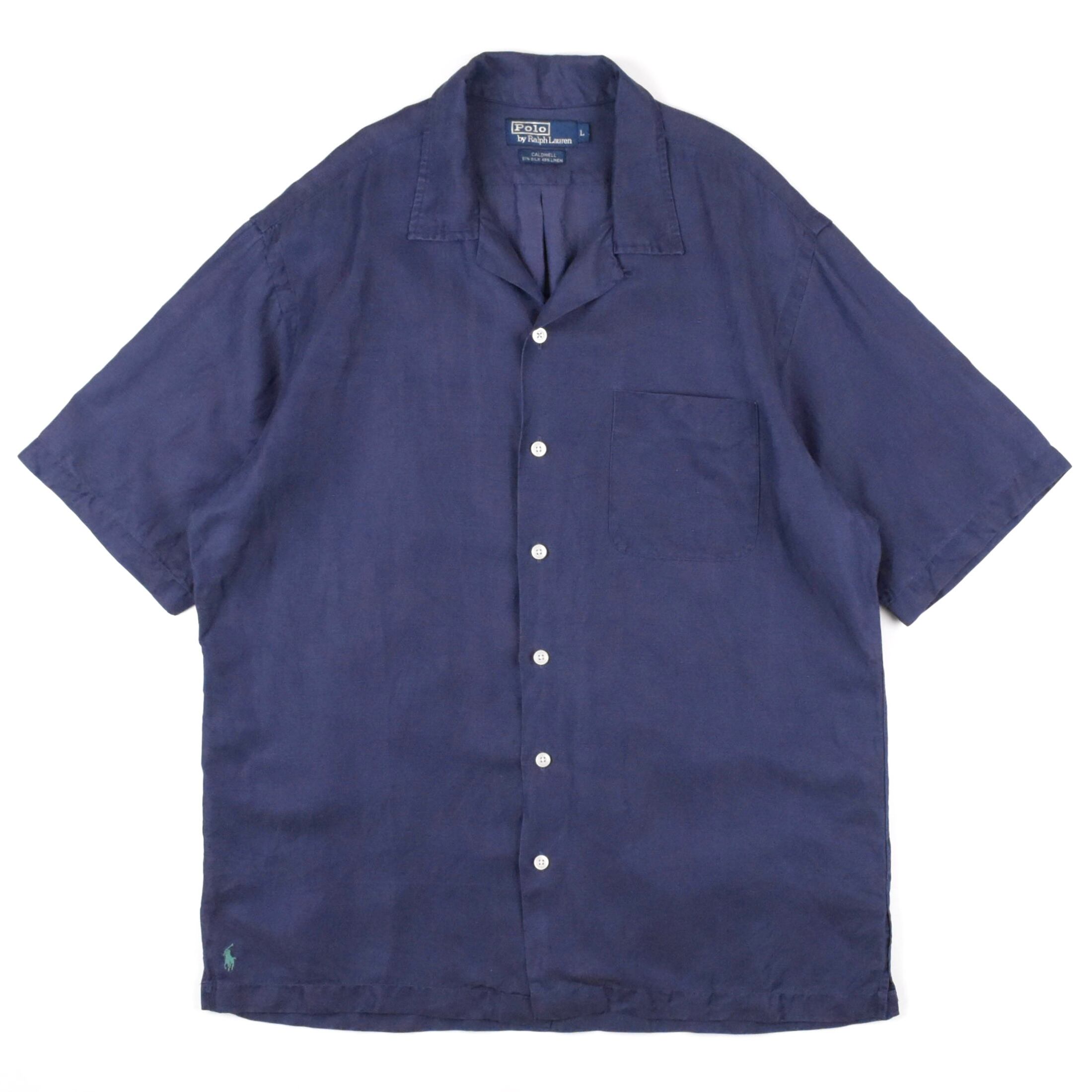 【品名】90s Polo Ralph Lauren Short Sleeve Open Collar Shirt CALDWELL NAVY EMERALD PONY
