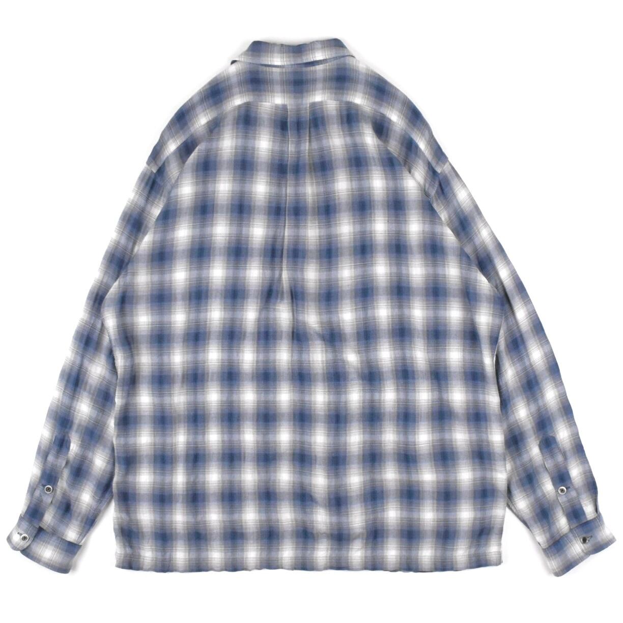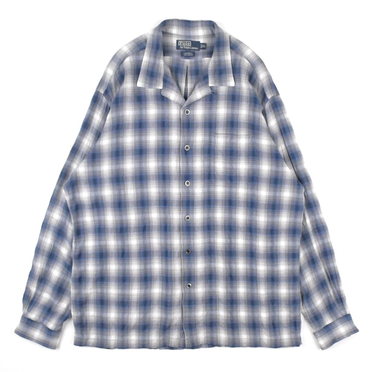 【品名】90s Polo Ralph Lauren Open Collar Long Sleeve Shirt SKI CALDWELL OMBRE CHECK BLUE NAVY WHITE