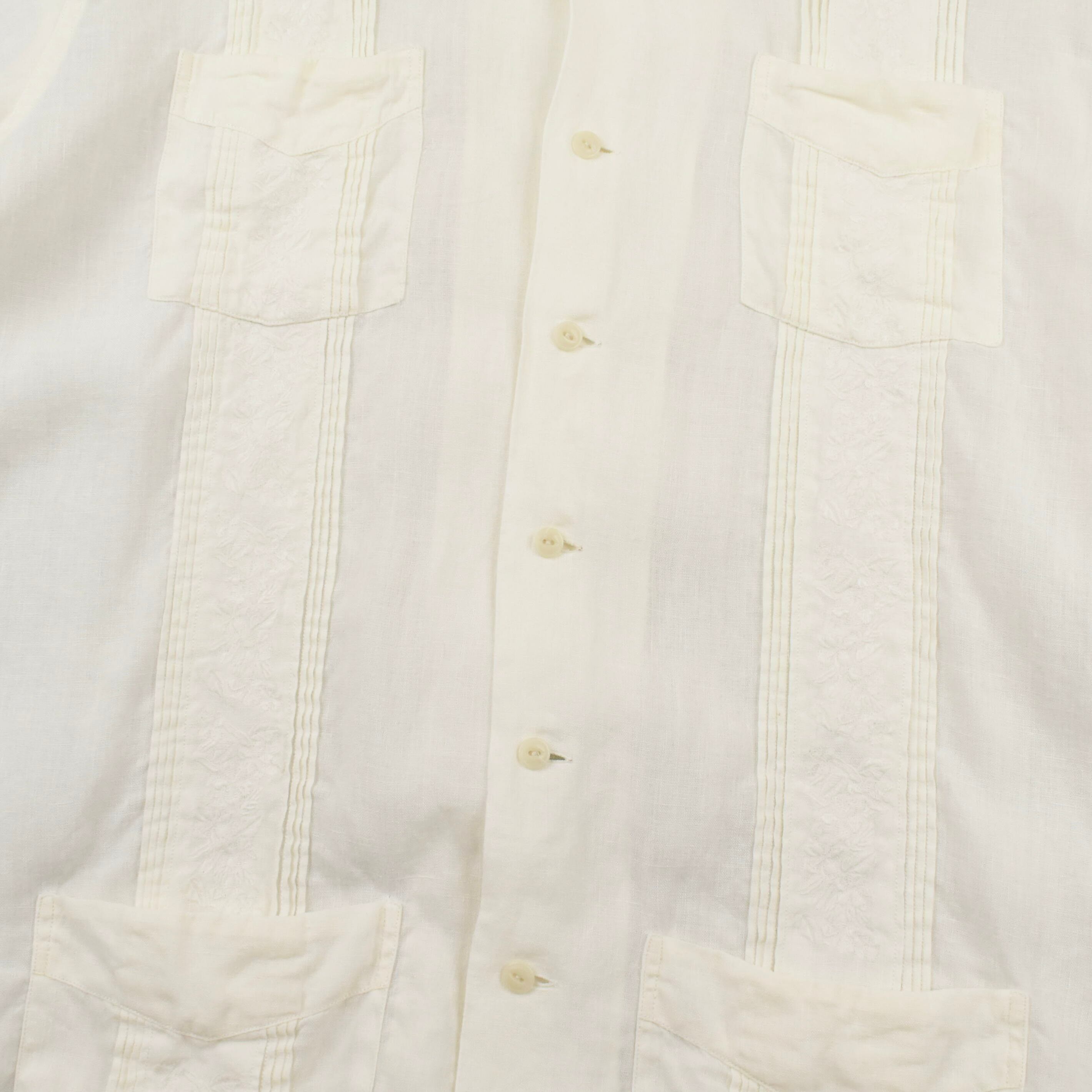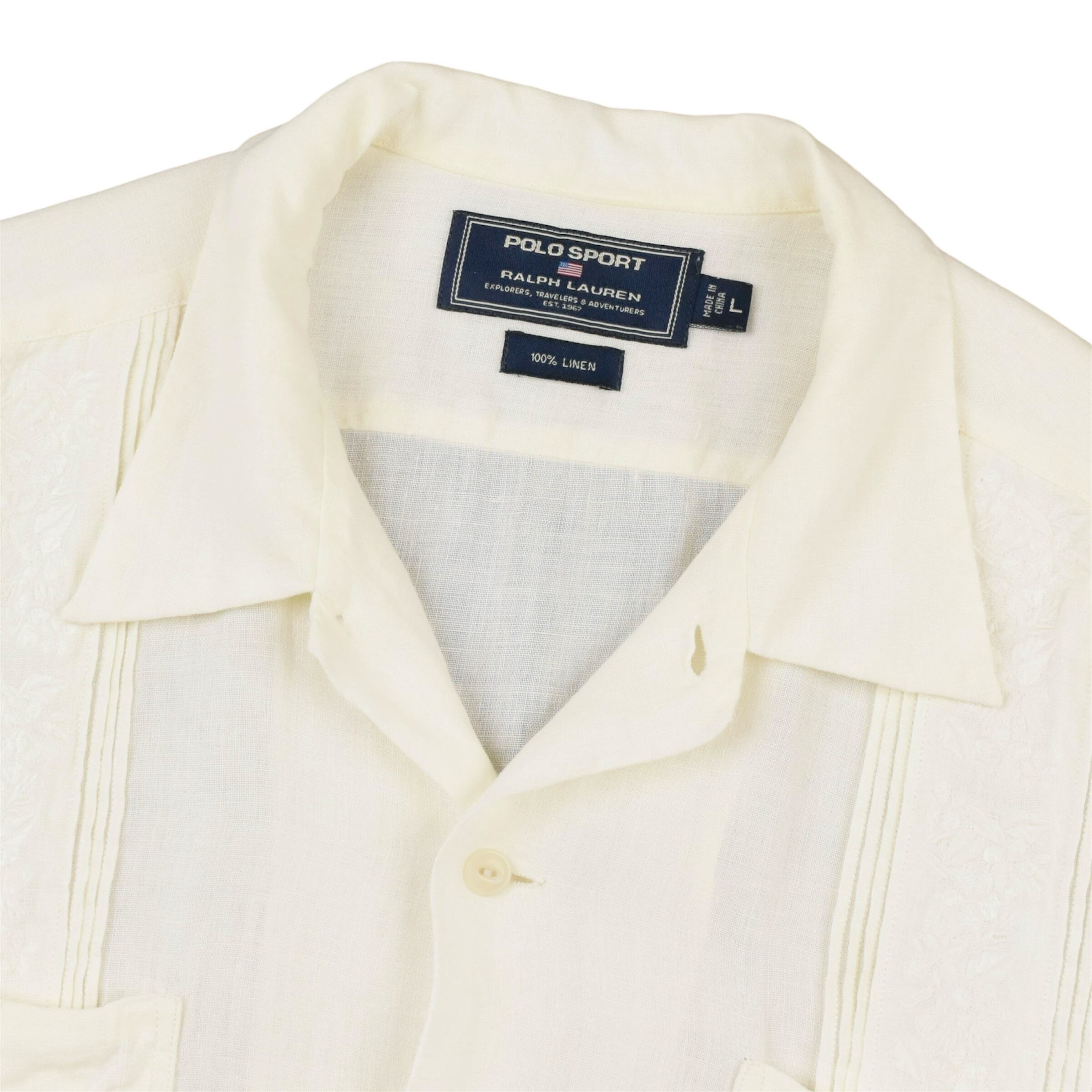 【品名】90s POLO SPORT RALPH LAUREN Open Collar Short Sleeve Cuba Shirt LINEN WHITE FLOWER
