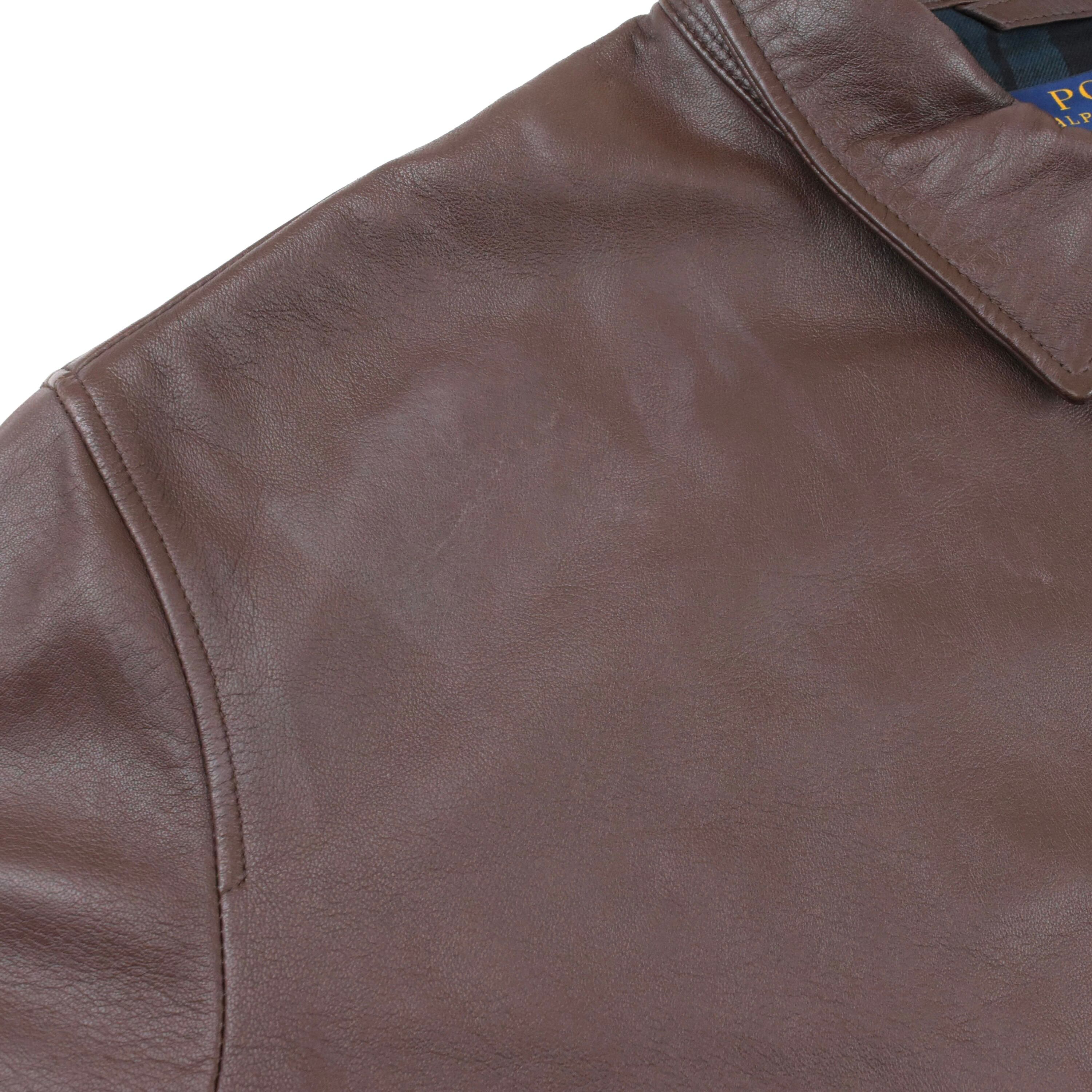 【品名】Polo Ralph Lauren Leather Swing Top Jacket BROWN