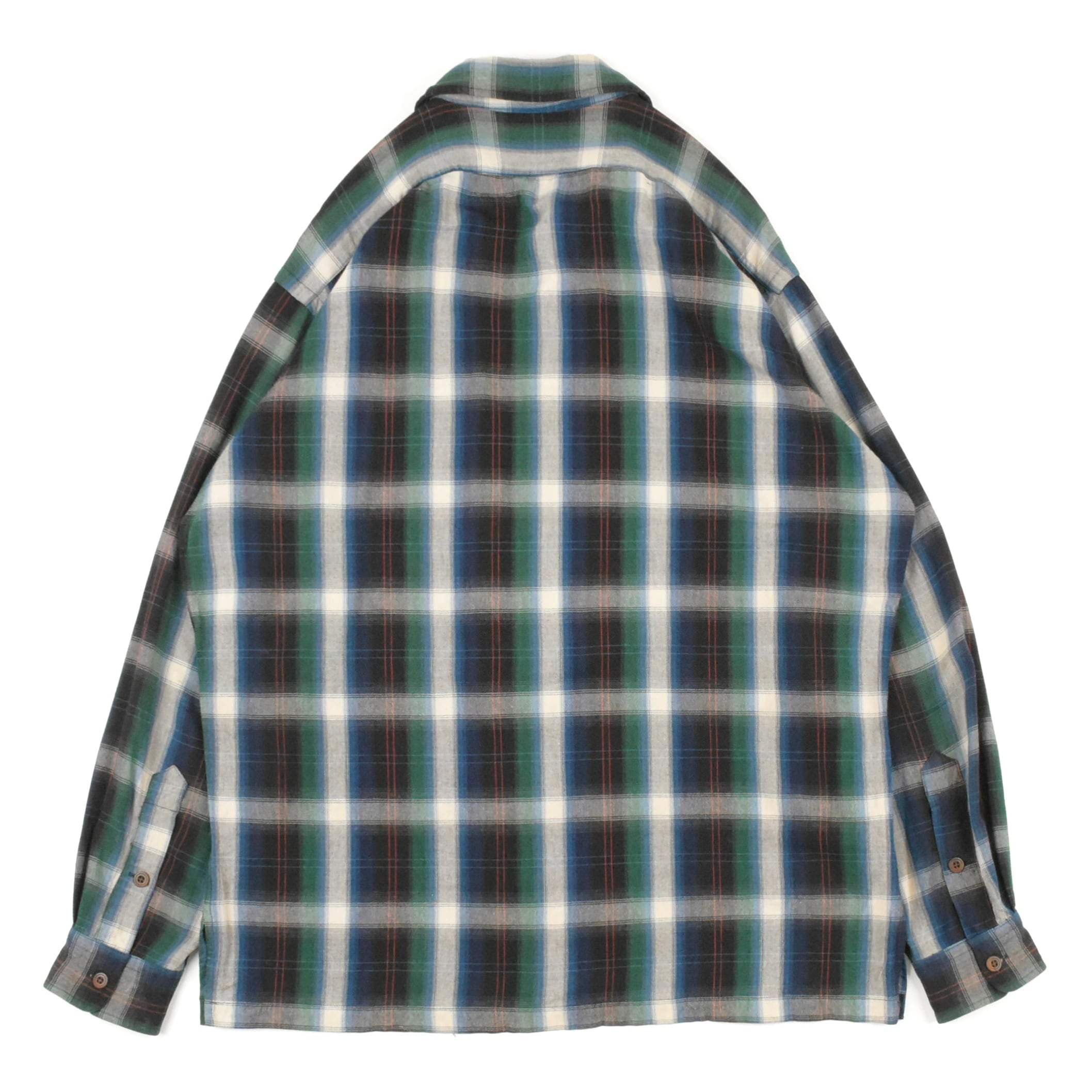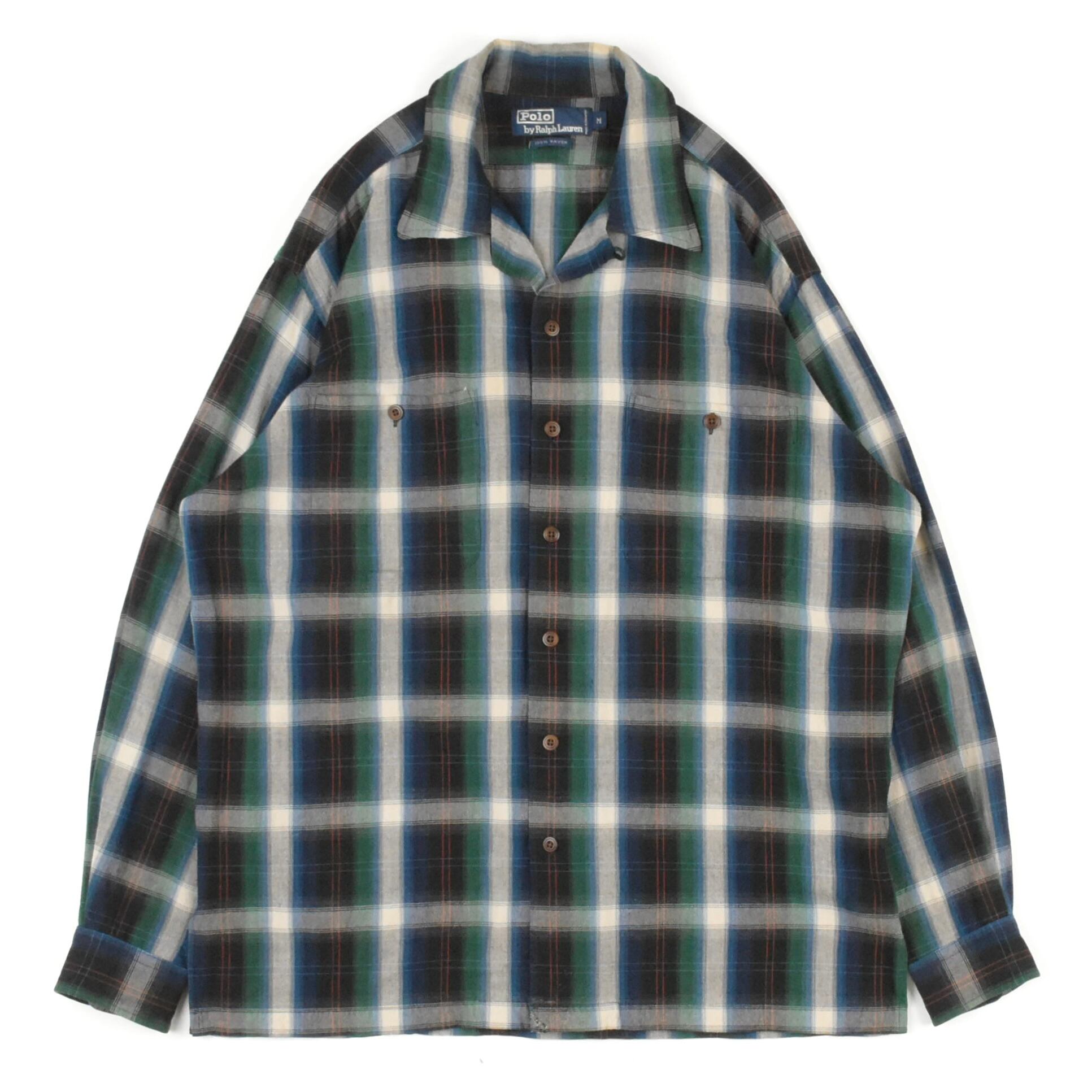 【品名】90s Polo Ralph Lauren Open Collar Long Sleeve Shirt RAYON CHECK BLACK BLUE WHITE