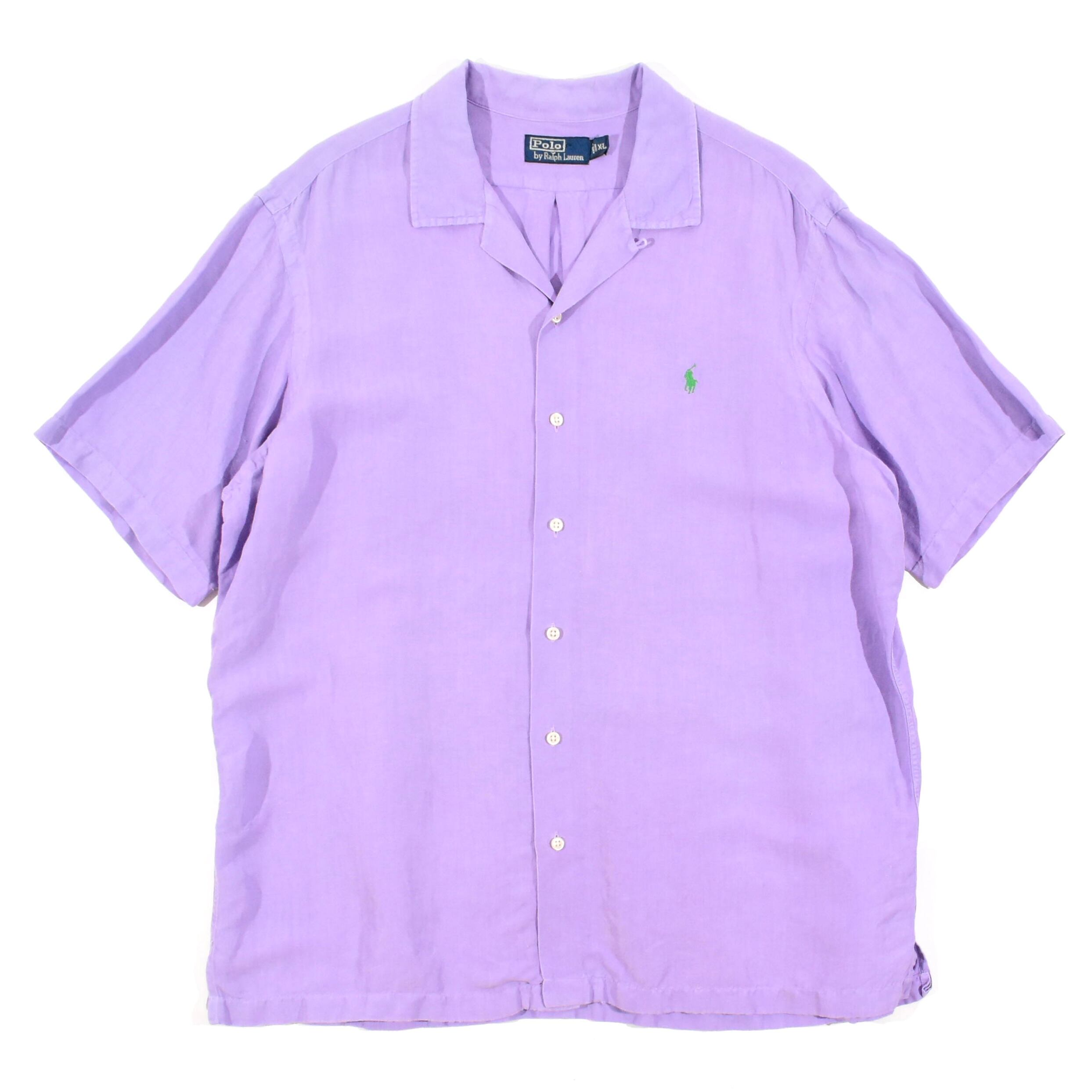 【品名】90s Polo Ralph Lauren Open Color Short Sleeve Shirt PURPLE LINEN SILK YELLOW GREEN PONY