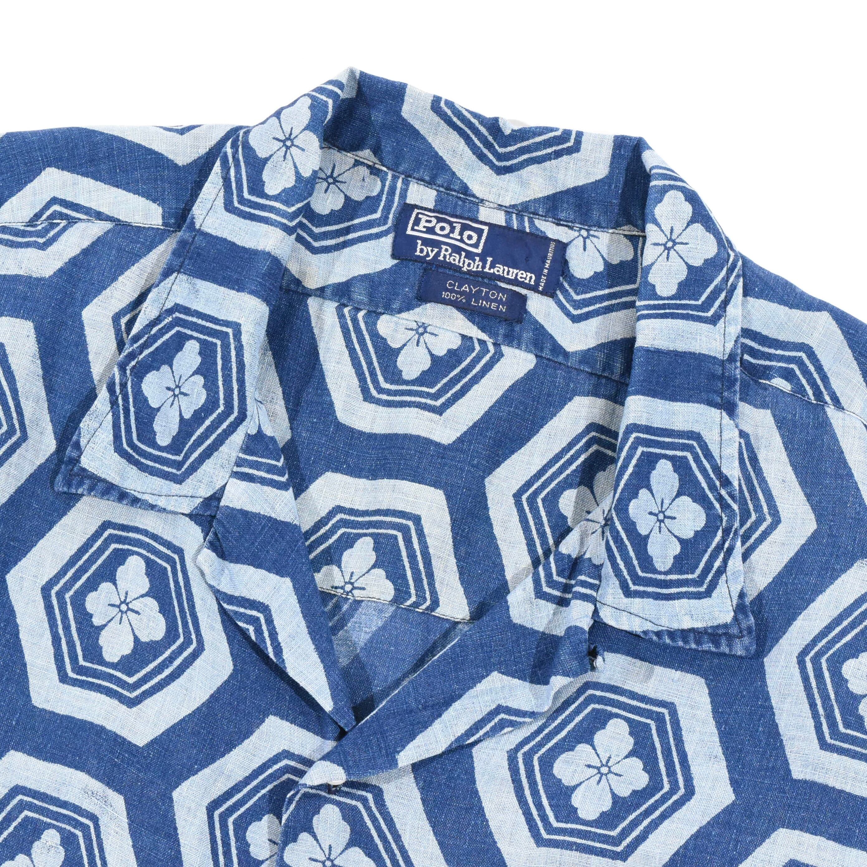 【品名】90s Polo Ralph Lauren Open Collar Short Sleeve Shirt CLAYTON KAMON 家紋柄