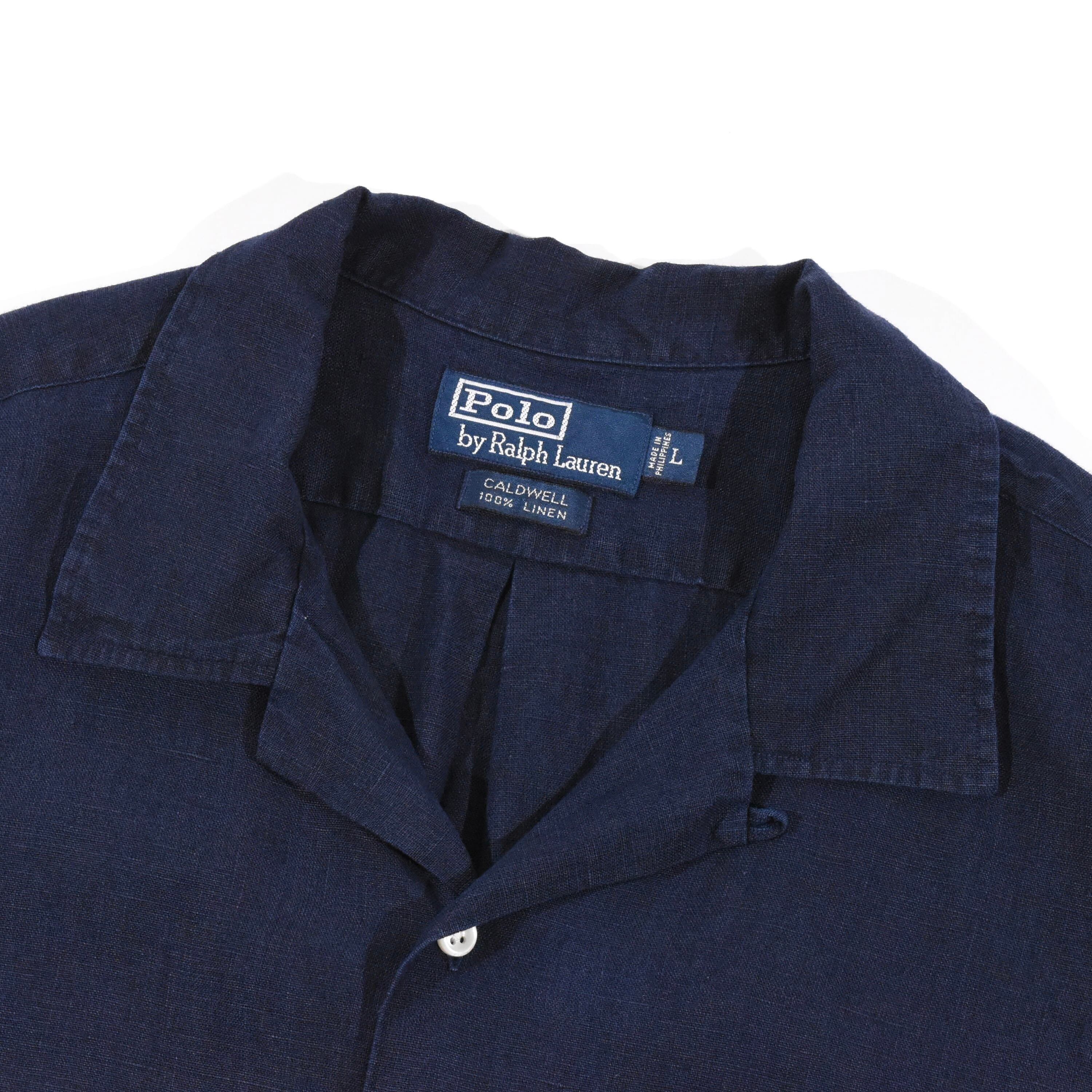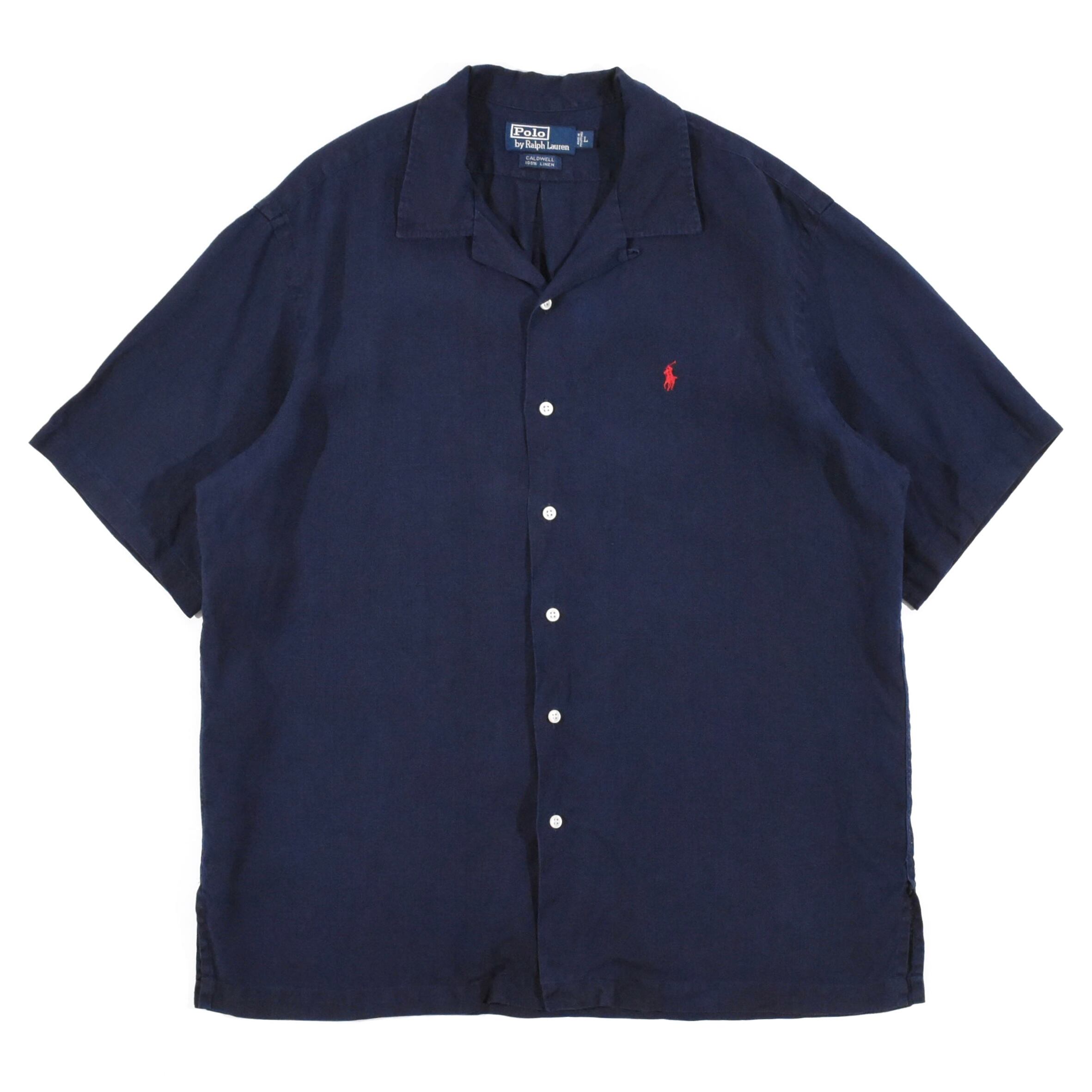 【品名】90s Polo Ralph Lauren Open Collar Short Sleeve Shirt CALDWELL NAVY RED PONY