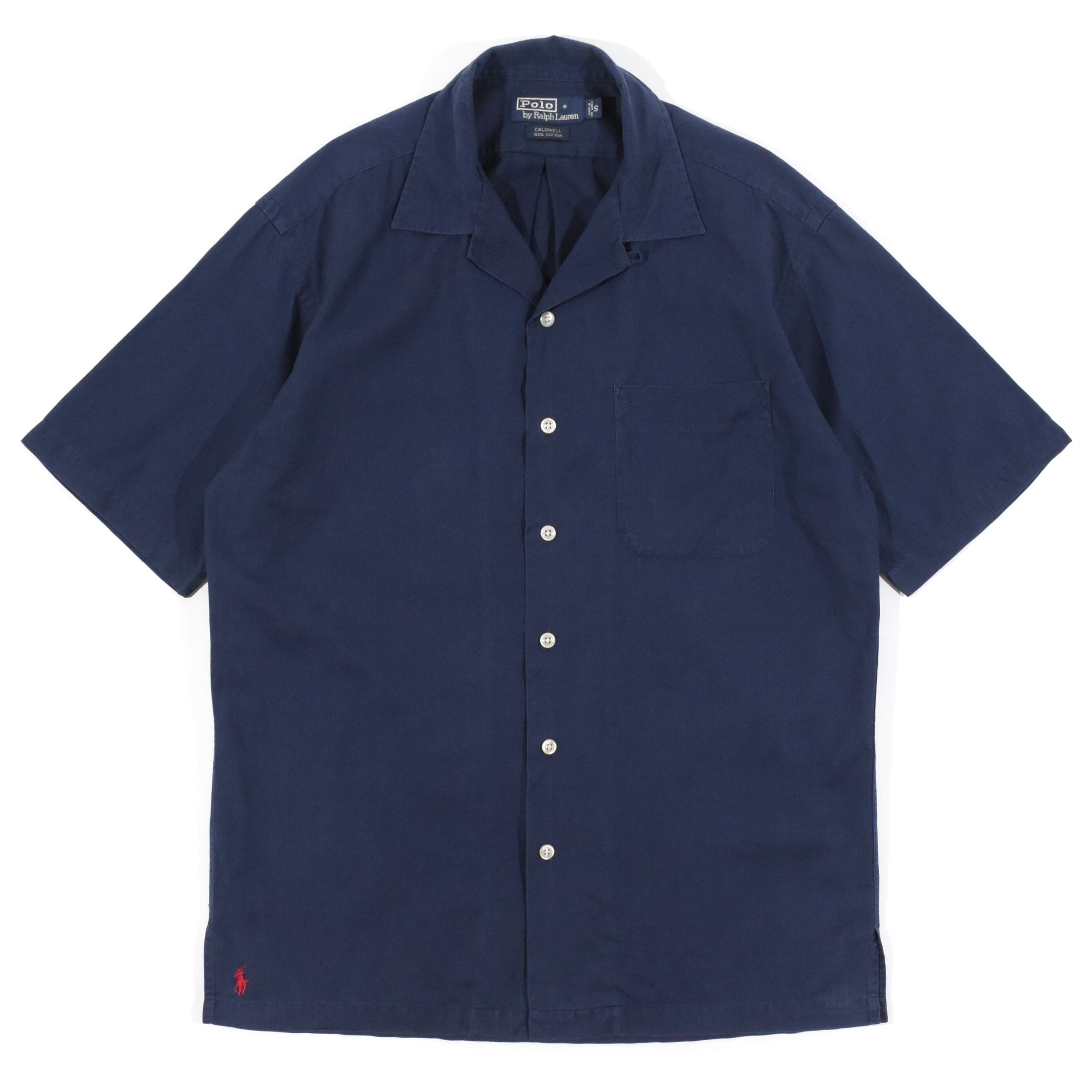 【品名】90s Polo Ralph Lauren Open Collar Short Sleeve Shirt CALDWELL NAVY RED PONY