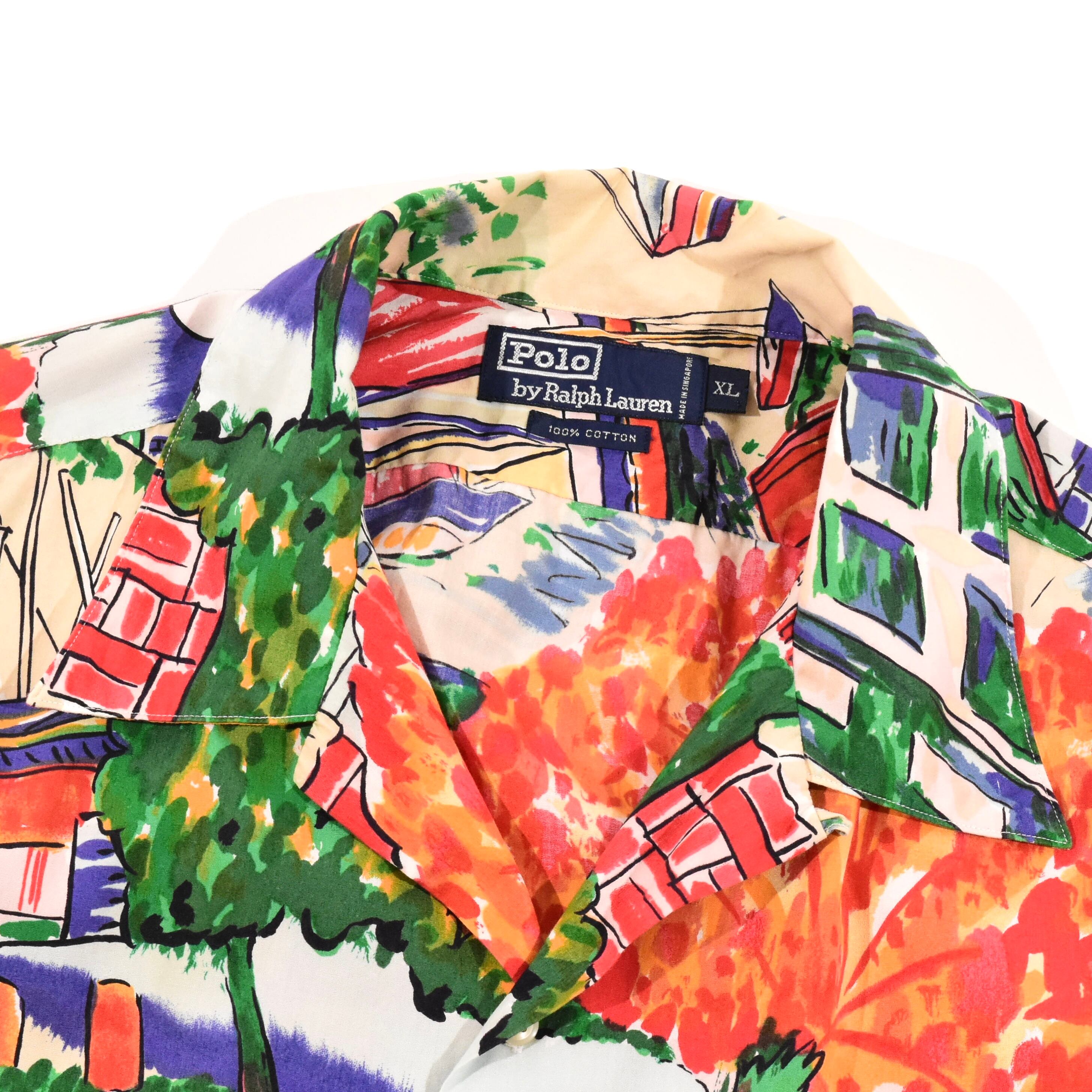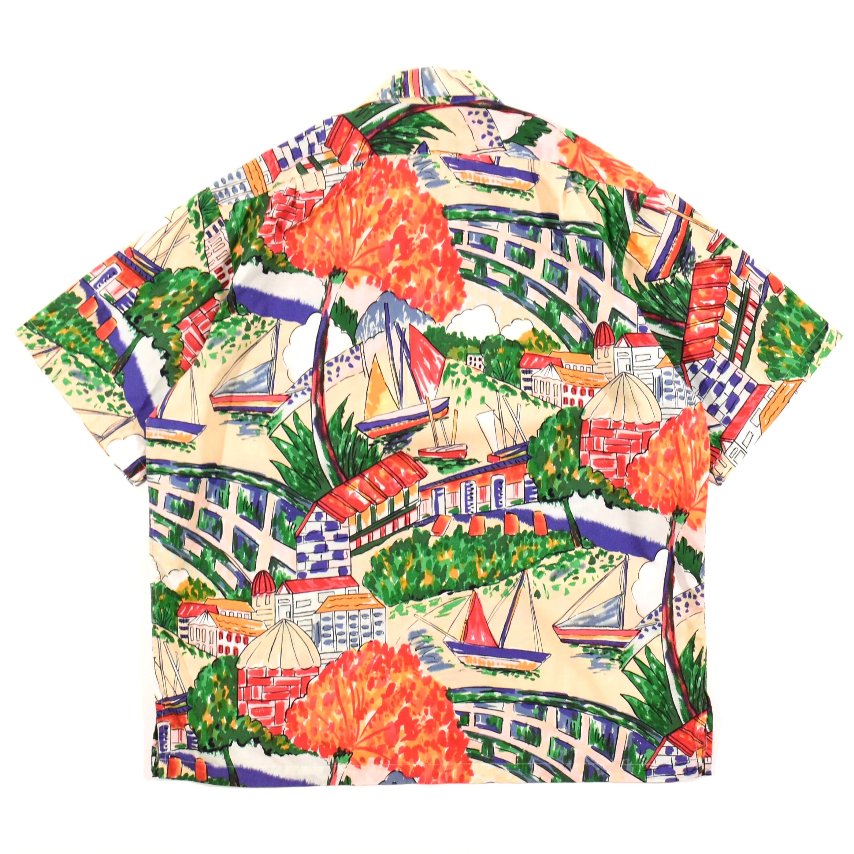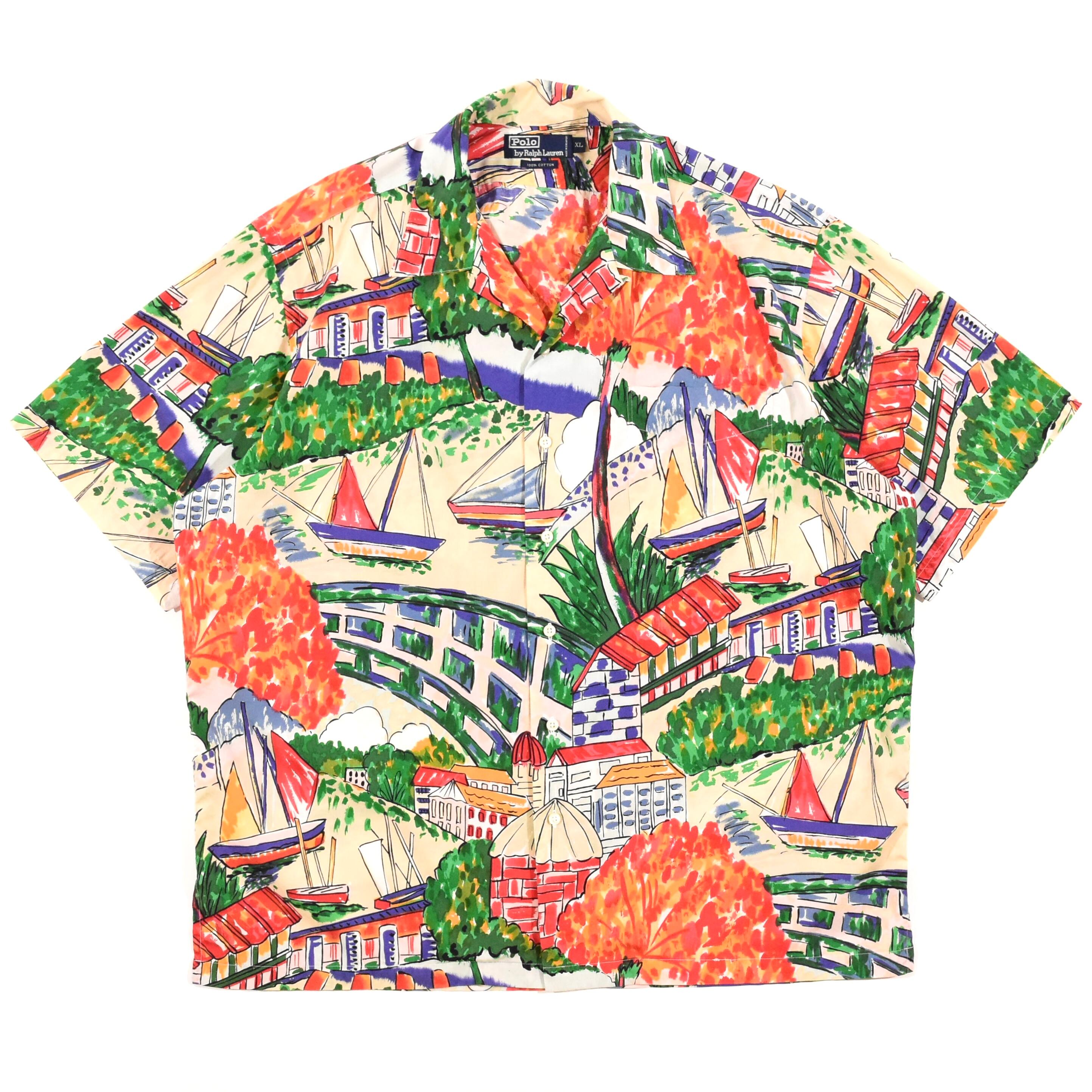 【品名】90s Polo Ralph Lauren Open Collar Short Sleeve Shirt COTTON CITYSCAPE