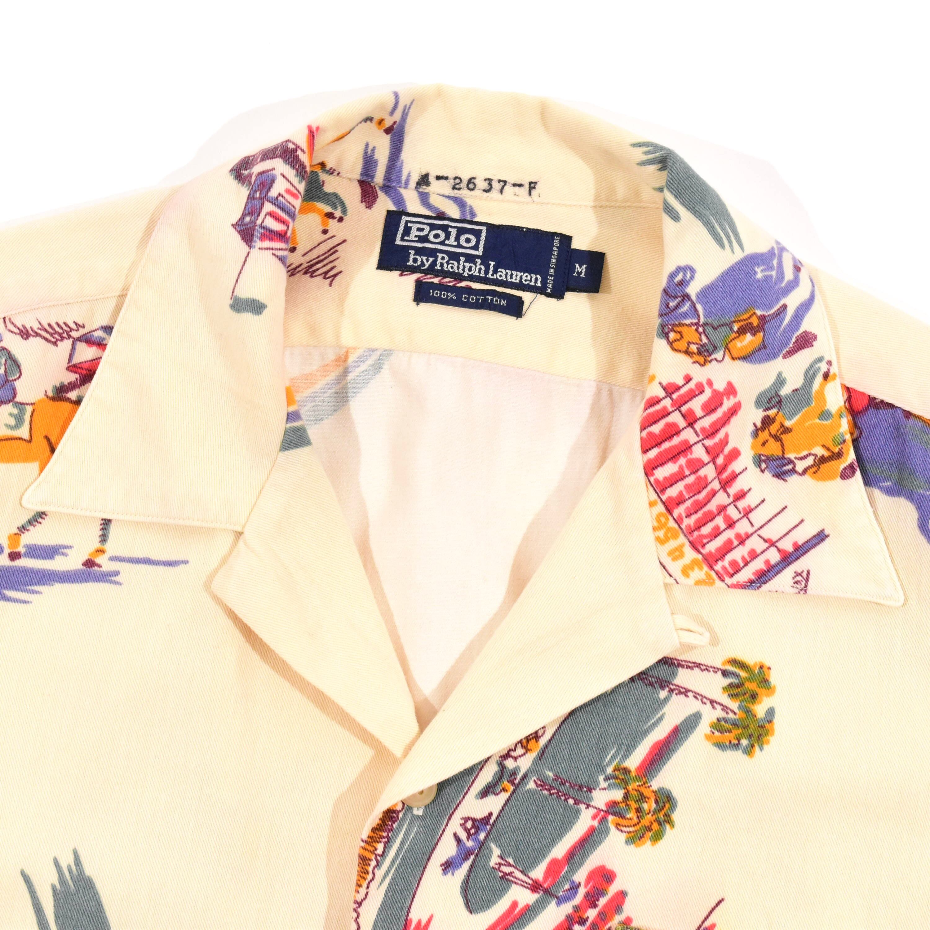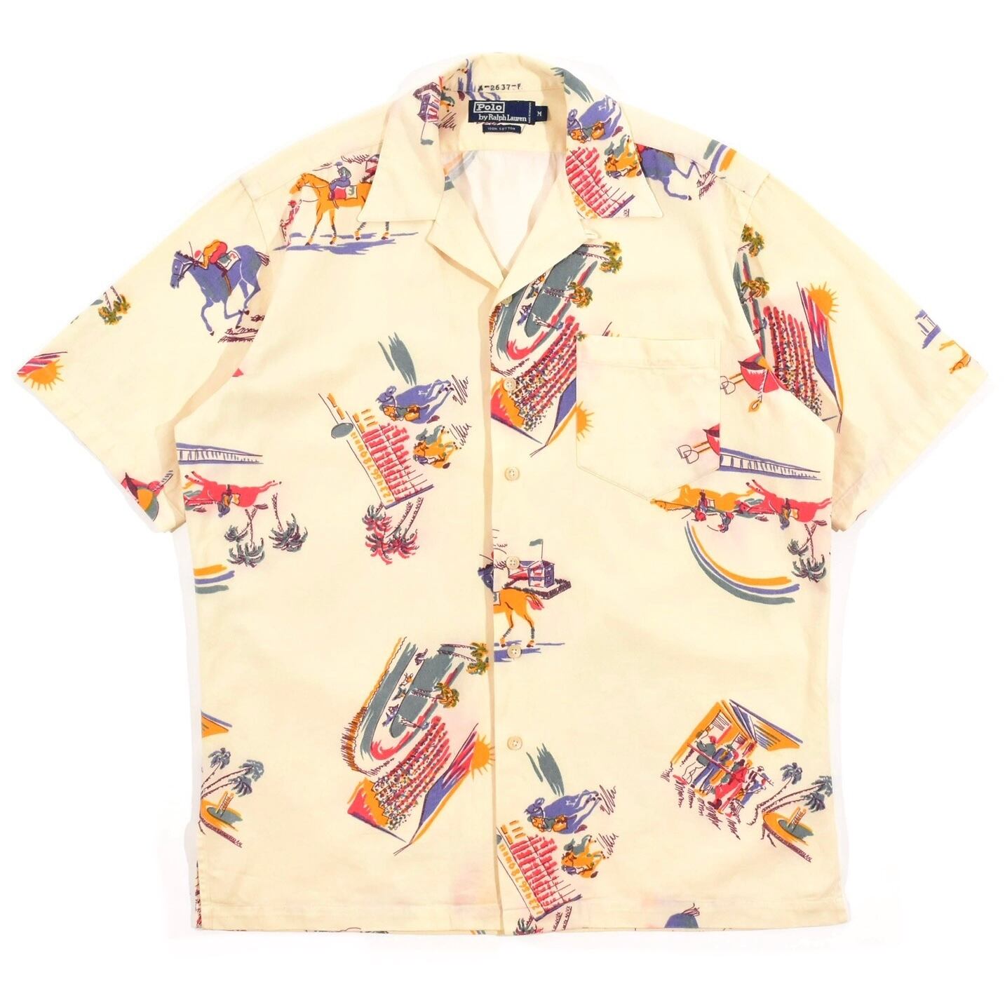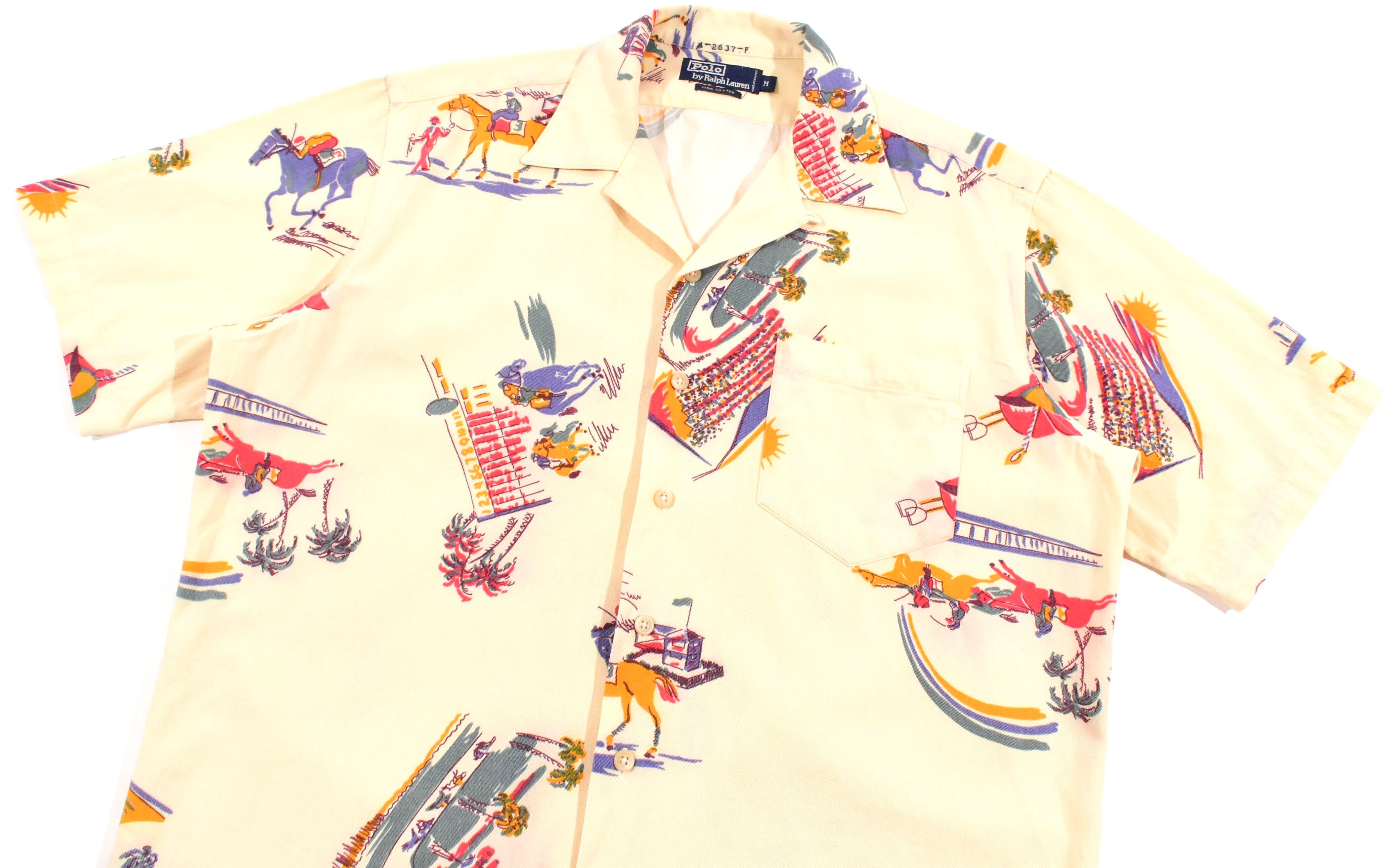 【品名】90s Polo Ralph Lauren Open Collar Short Sleeve Shirt COTTON HORSE RACING