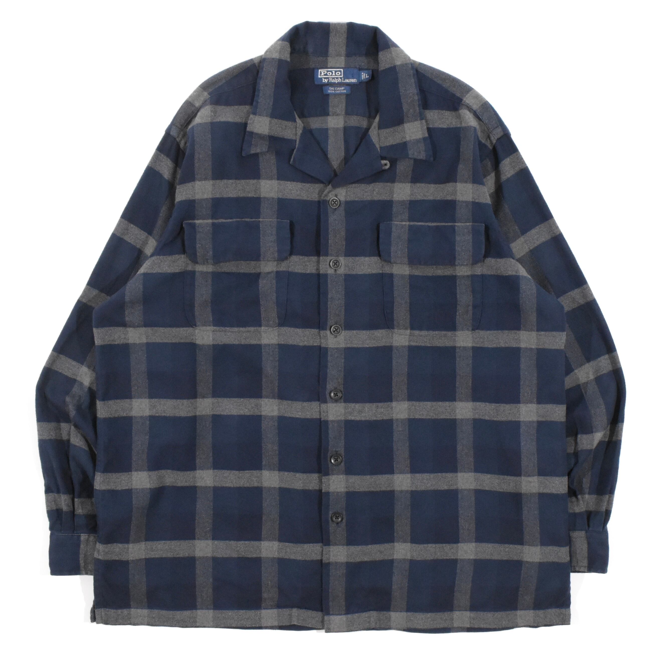 【品名】90s Polo Ralph Lauren Open Collar Long Sleeve Shirt SKI CAMP CHECK
